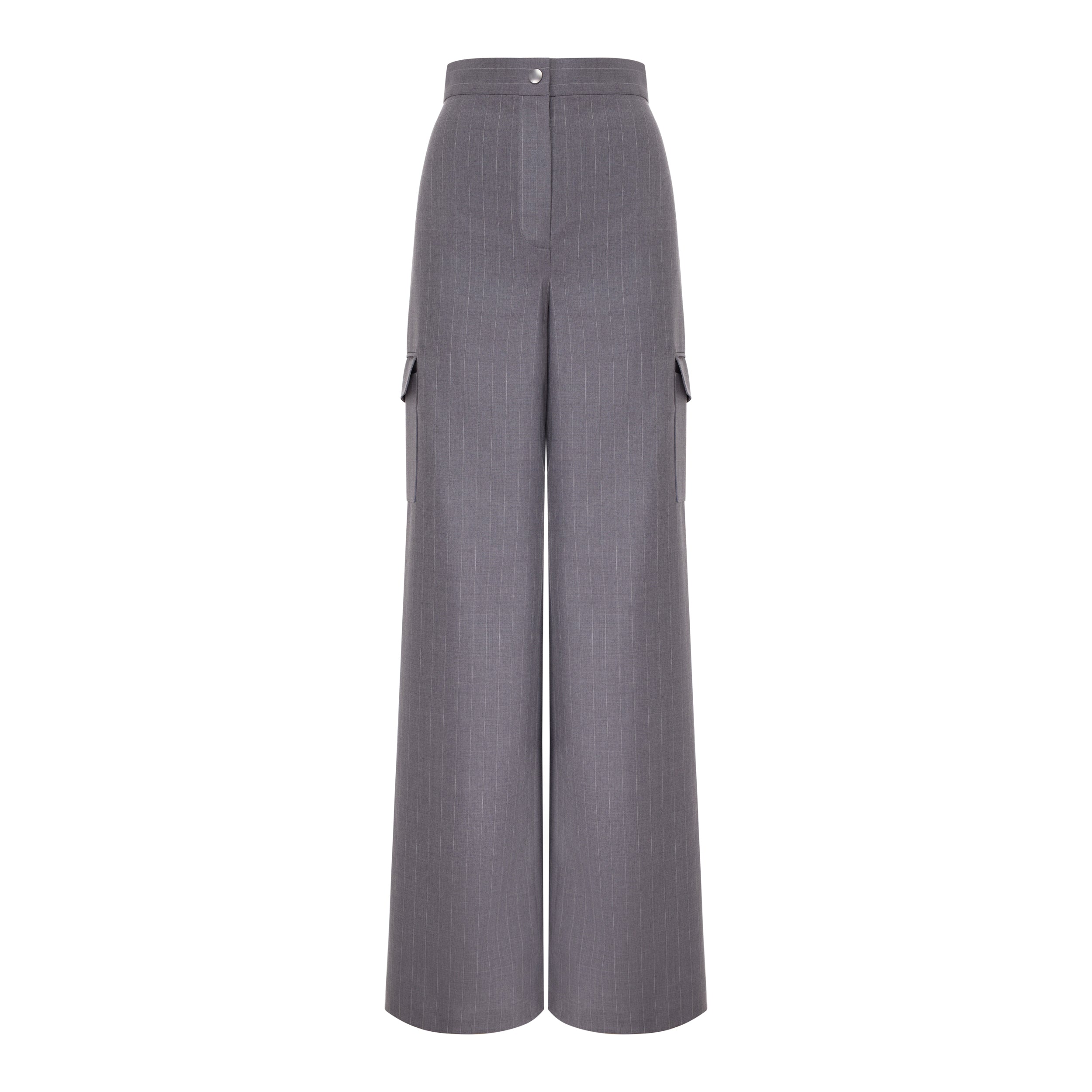 Gray Striped Wool High-Rise Trousers (Try-on)