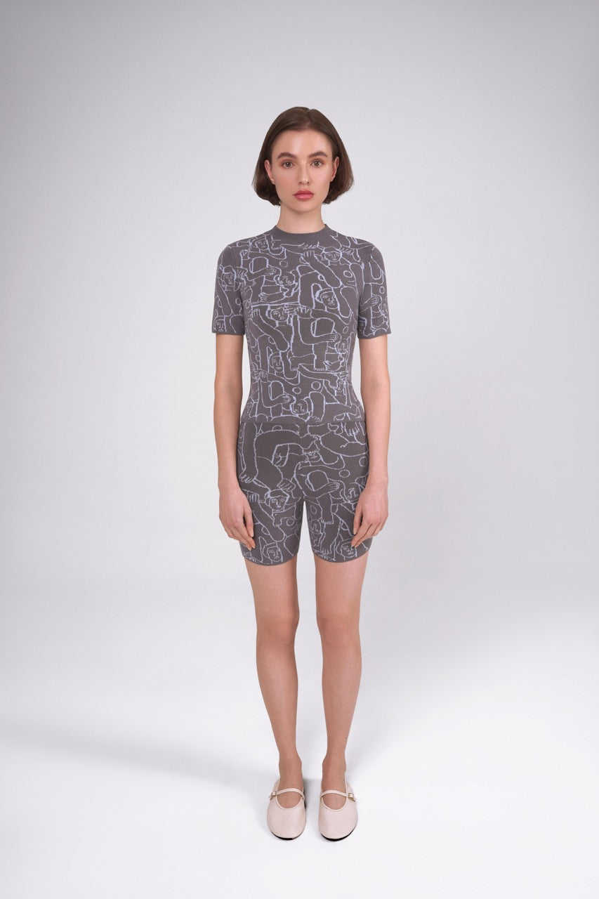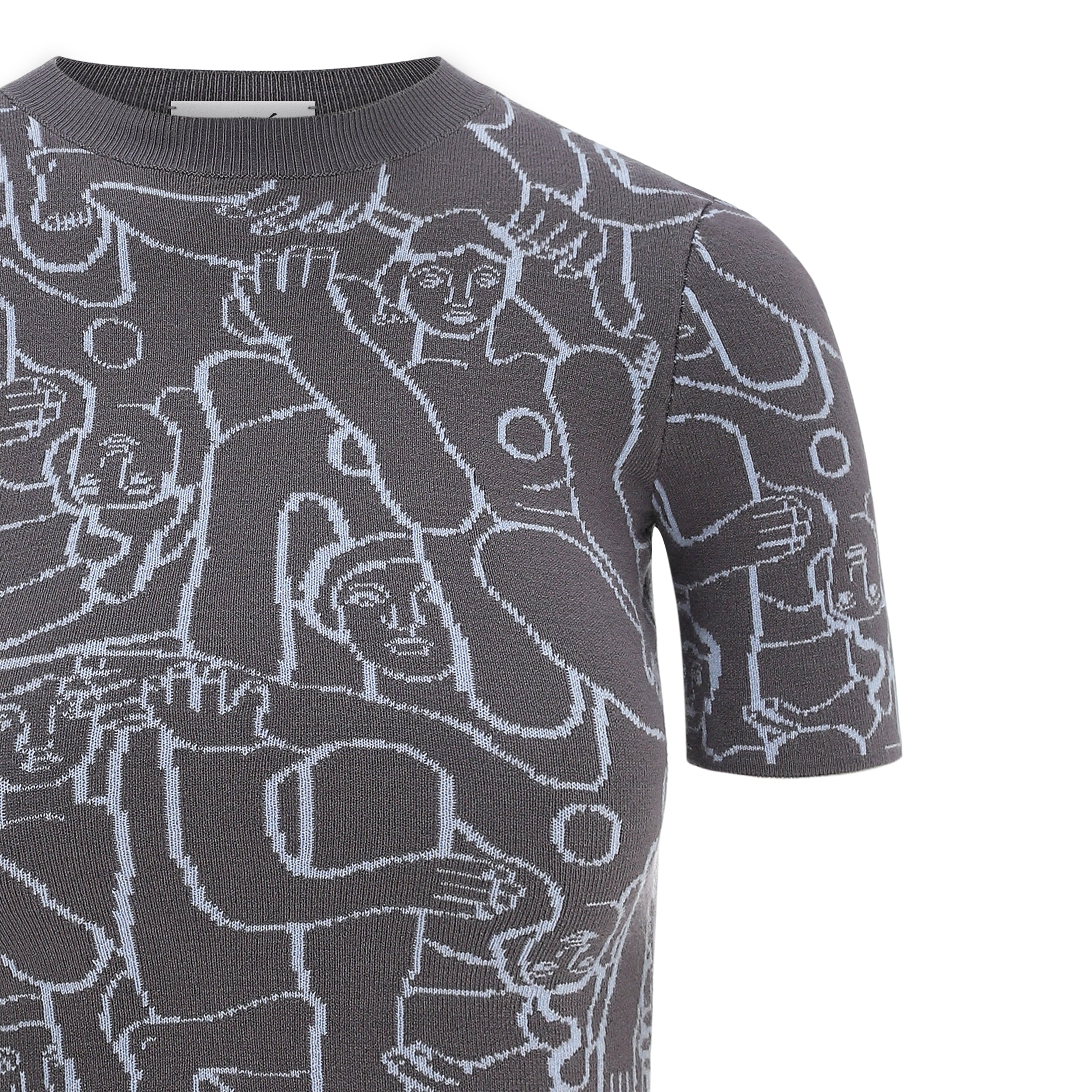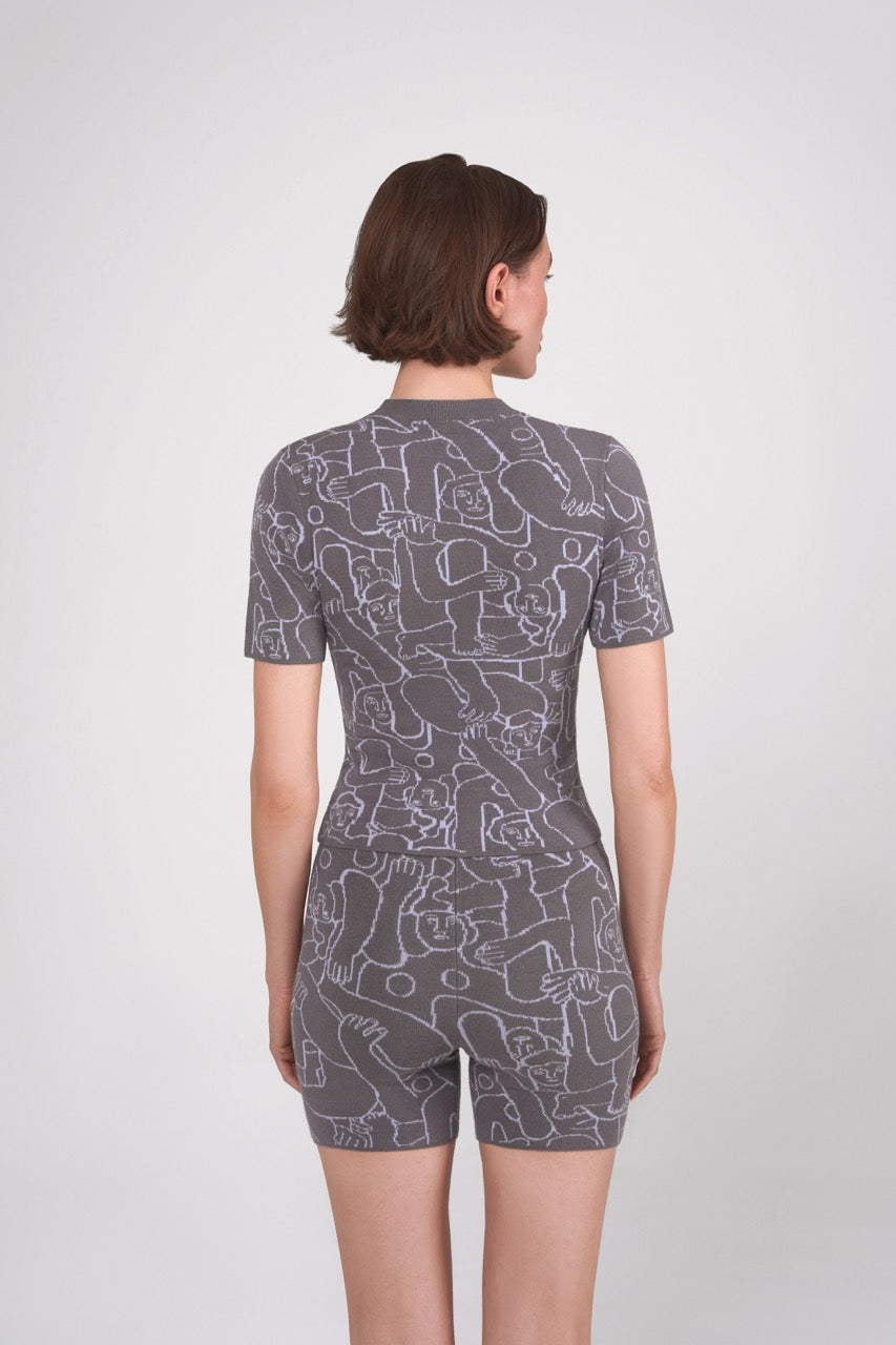 Human Mess Short Sleeve Knitted Top (Grey/Sky Blue)