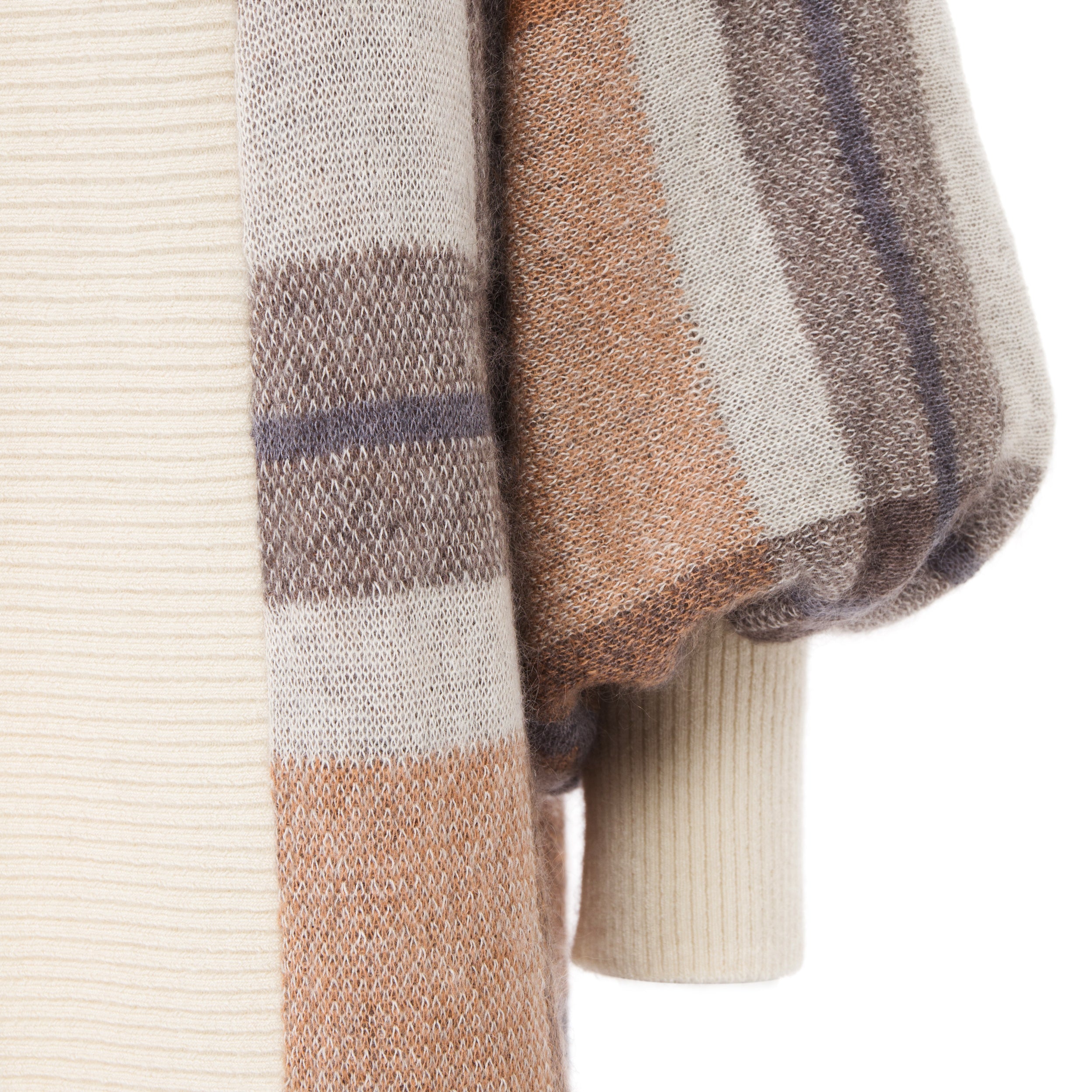 Wrap yourself in warmth with this milky brown long cardigan in a large check pattern. Crafted from cruelty-free mohair and mulberry silk, the cardigan features voluminous arms for a trendy and comfortable style.