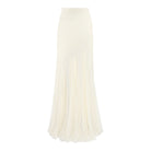 Asymmetrical Lace-Panelling Maxi Skirt in Viscose and Silk Chiffon
