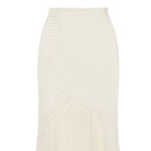 Delve into elegance with this asymmetrical lace-paneled maxi skirt, designed with a flattering mermaid shape that accentuates your curves. The flowing silk chiffon fabric moves gracefully with every step, while the intricate lace details add a delicate touch of femininity. Small button decorations enhance the waistline, giving a refined look to the skirt. Made from 100% silk, it is both luxurious and lightweight, making it a perfect choice for day and evening occasions. Paired with a blouse or a simple top, this maxi skirt is a timeless addition to any wardrobe.