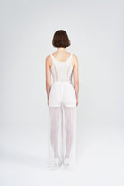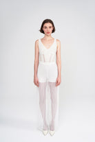 This lace-paneled corset top is a beautiful blend of vintage charm and modern sophistication. The stretchy fabric contours your body, providing a figure-hugging fit that enhances your natural shape. Delicate lace piping details run throughout, offering a feminine touch to this striking corset-style top. The V-neckline and regular straps create a flattering silhouette, perfect for pairing with skirts, trousers, or layering under a jacket. Handmade in the UAE, this top is ideal for special occasions where you want to feel elegant and stylish.