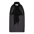- Features: High Neck, Bow Tie Detail, Drape Design, Non-Stretch